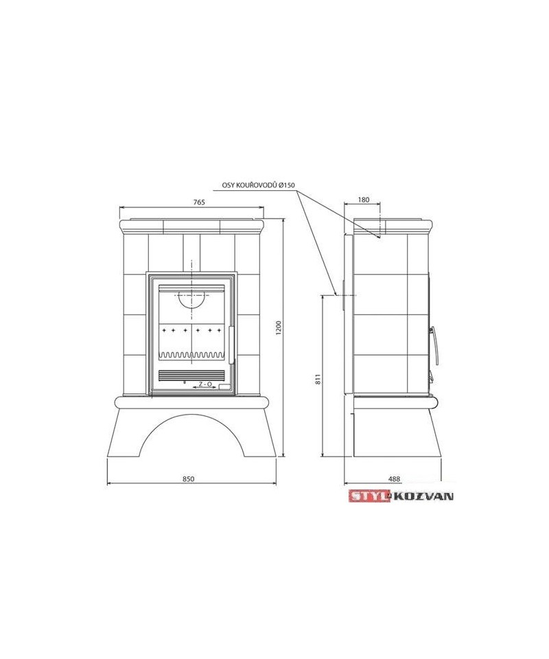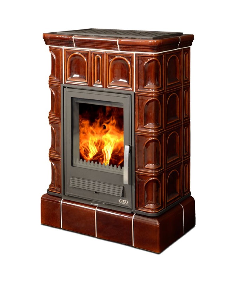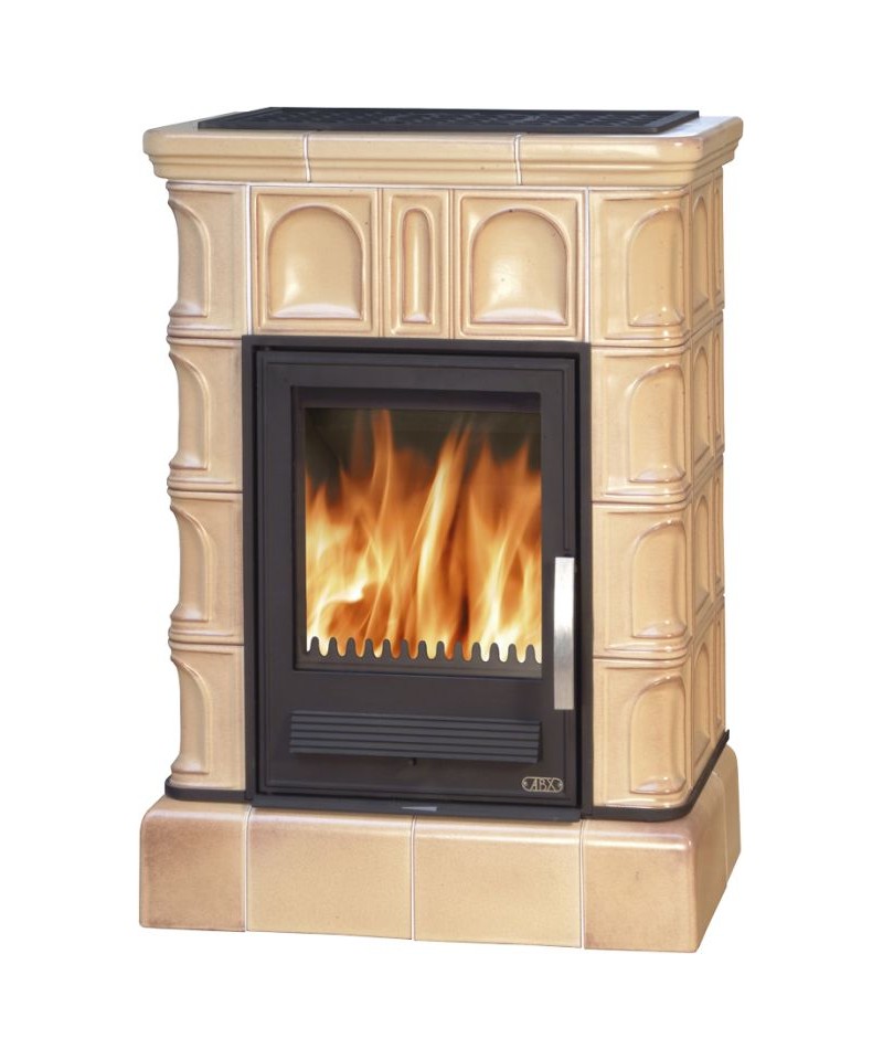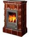 Teplovodná kachľová pec BRITANIA K - kachľová pec klasického dizajnu s kombinovanou vložkou liatina/plech vo farebných prevedeniach torf, ahorn, tabakbraun, zelená, hnedá, perle a cappuccino. Možnosť využitia horného a zadného vývodu dymovodu. Teplovodný výmenník (6,9 kW voda + 3,5 vzduch).