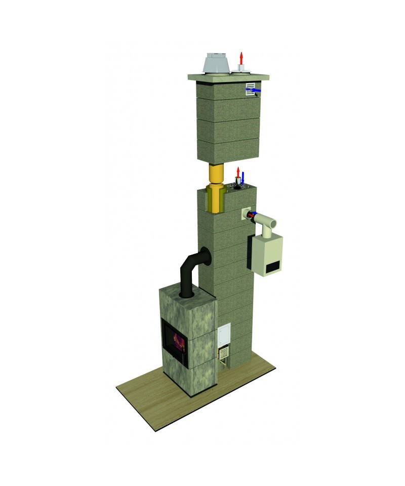 CJ Blok Dvojkomín tuhé palivo/kondenzačný kotol výška 10,93m/90°/priemer Ø180/Ø80