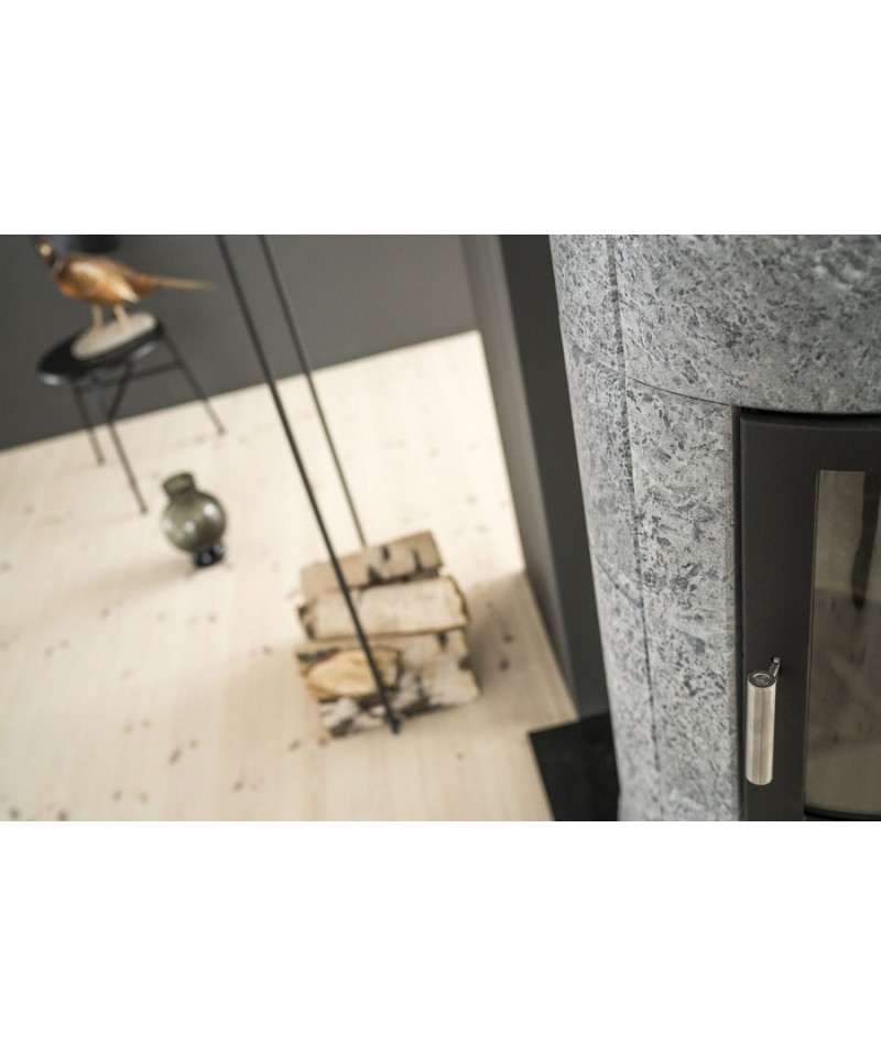 Rúčka dverí je vyrobená z lesklej ocele, ktorá je prirodzene ochladzovaná vzduchom, vďaka čomu je obsluha pohodlná i keď sú kachle nahriate.