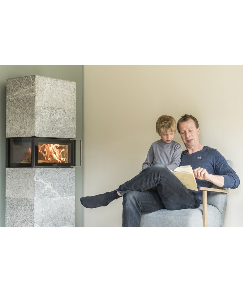 Rúčka dverí je vyrobená z lesklej ocele, ktorá je prirodzene ochladzovaná vzduchom, vďaka čomu je obsluha pohodlná i keď sú kachle nahriate.