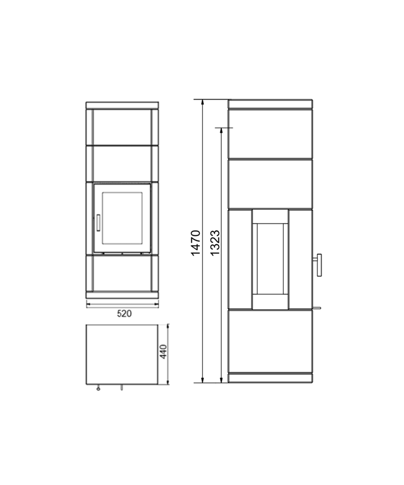 Bočné sklá sú dvojité, aby sa zaistilo dobré spaľovanie a obmedzilo sa vyžarovanie tepla cez sklo.