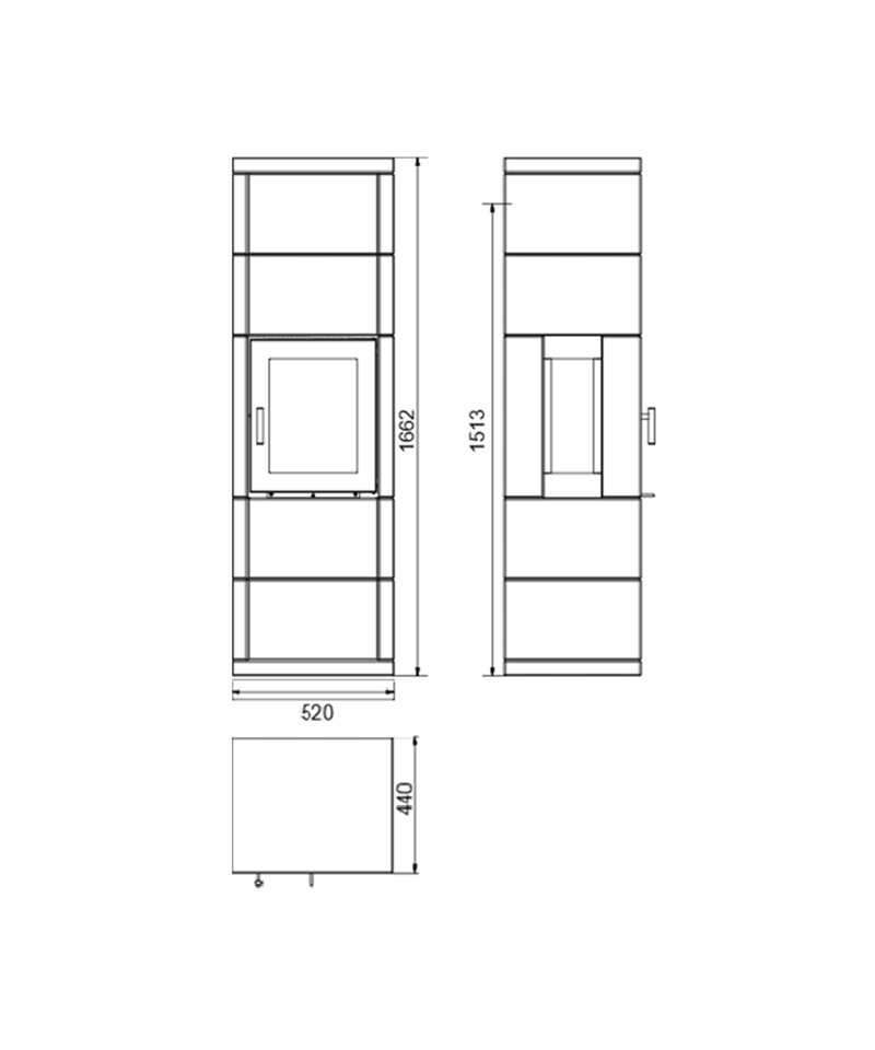 Bočné sklá sú dvojité, aby sa zaistilo dobré spaľovanie a obmedzilo sa vyžarovanie tepla cez sklo.