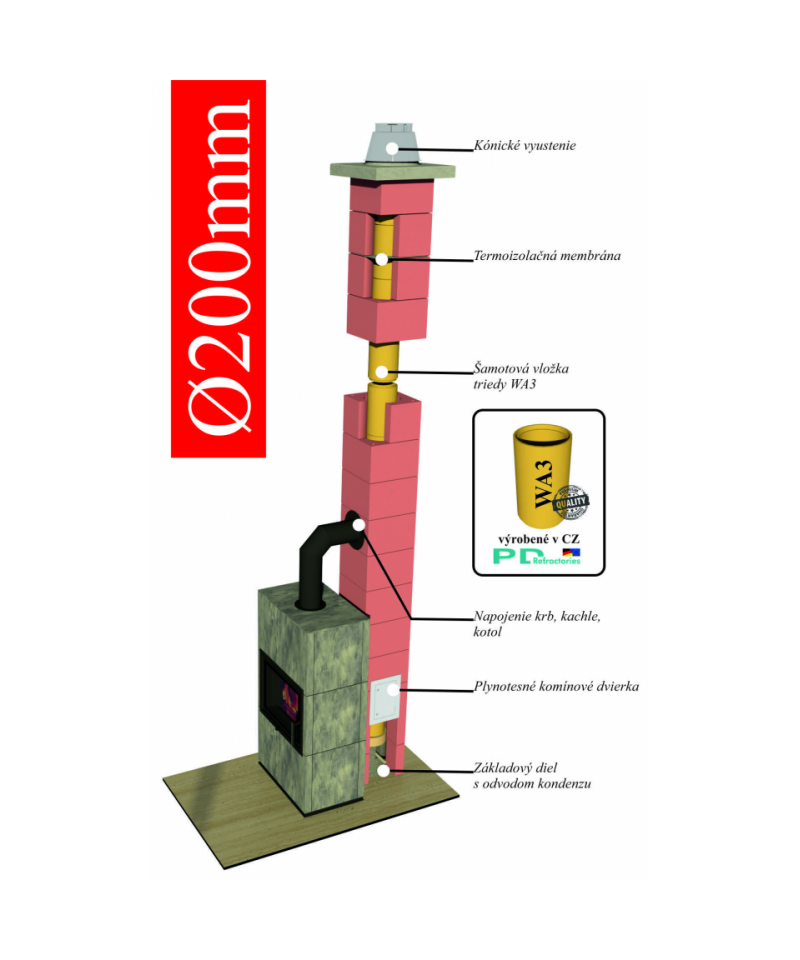 Komínový systém CJ BLOK® ENERGO KERAMIC spĺňa požiadavky noriem EN 13063-1 T600 N1 D 3 G20 ako aj EN 13063-2 T400 N1 W2 O20 potvrdené certifikátmi závodnej kontroly výroby č. 1020-CPR-030040624 ako aj č. 1020-CPR-030040625 a ponúkame ho s nasledujúcimi priemermi: Ø160, Ø180, Ø200