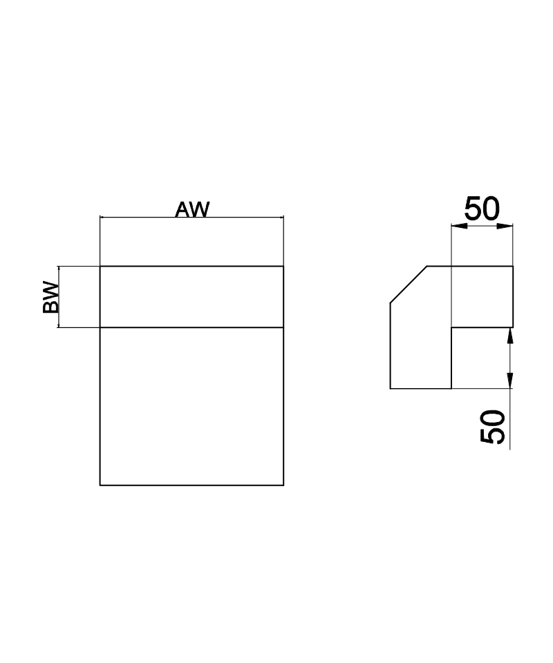 Koleno stena-strop do systému hranatých teplovzdušných rozvodov