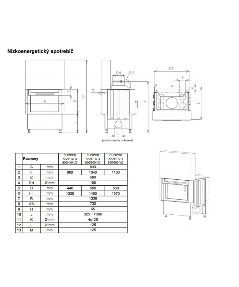Je dostupný pre krbové vložky CH, Ď, M, B v tvarovom prevedení “A, B, C“ a rozmerovom prevedení 2S, 3S, 4S.
