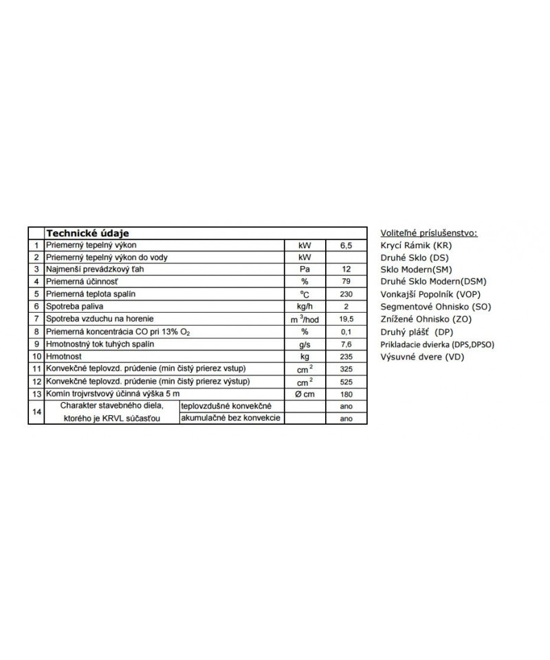 Priemerný tepelný výkon: 6,5 kW