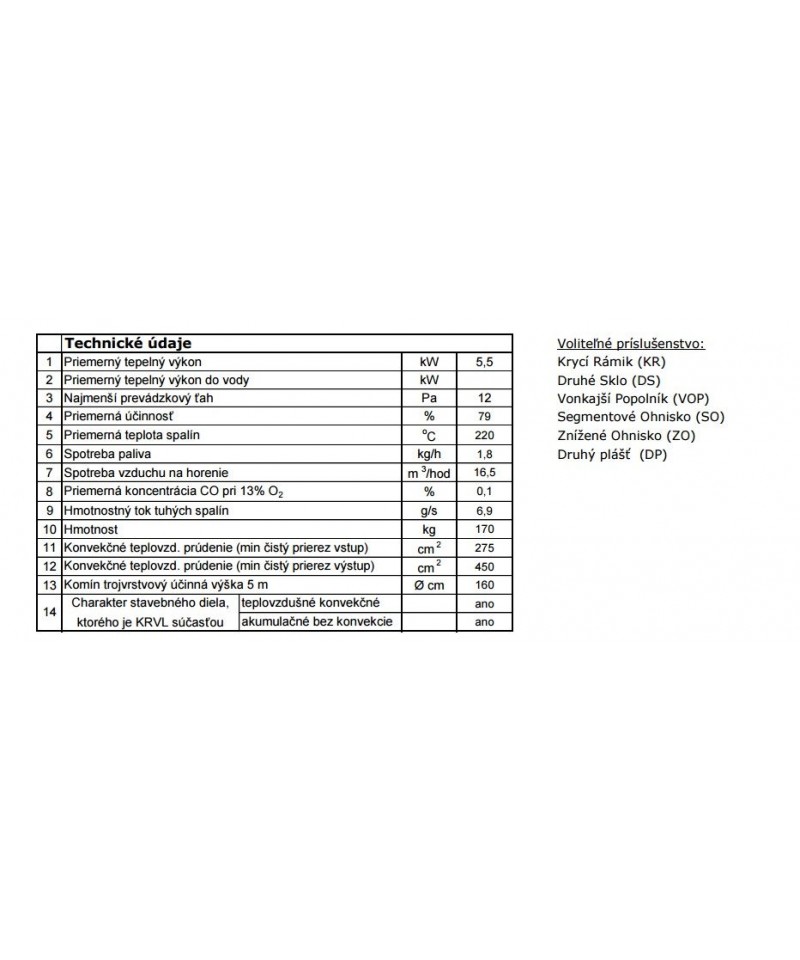Je dostupný pre krbové vložky CH, Ď, M, B v tvarovom prevedení “A, B, C“ a rozmerovom prevedení 2S, 3S, 4S.