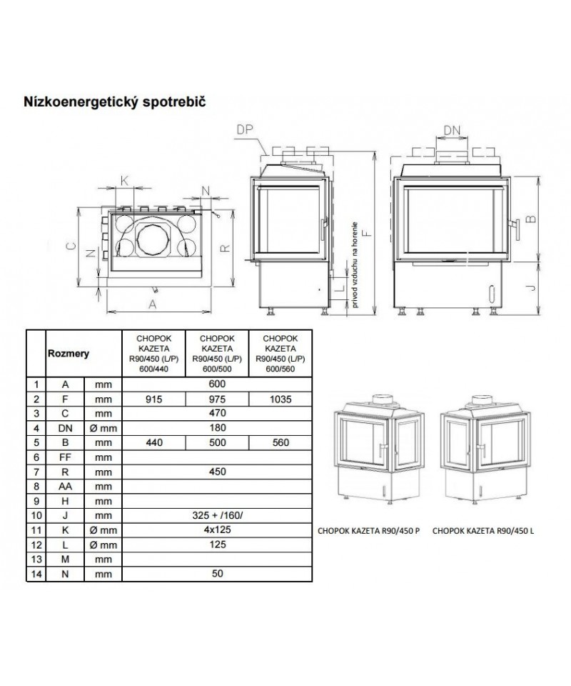 Je dostupný pre krbové vložky CH, Ď, M, B v tvarovom prevedení “A, B, C“ a rozmerovom prevedení 2S, 3S, 4S.
