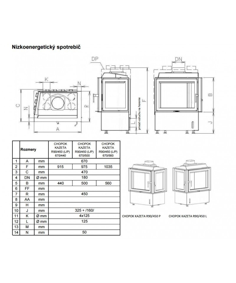 Je dostupný pre krbové vložky CH, Ď, M, B v tvarovom prevedení “A, B, C“ a rozmerovom prevedení 2S, 3S, 4S.
