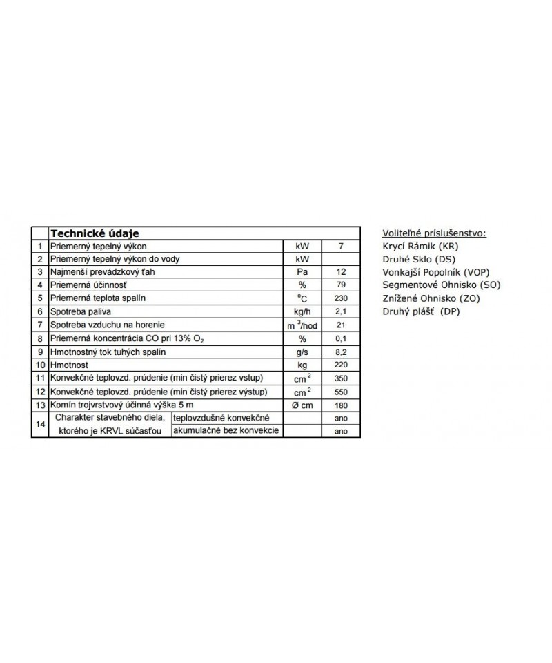 Je dostupný pre krbové vložky CH, Ď, M, B v tvarovom prevedení “A, B, C“ a rozmerovom prevedení 2S, 3S, 4S.