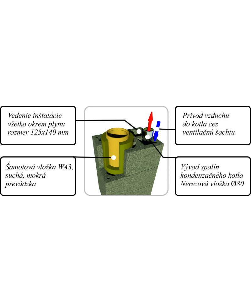 • Na tento komín môžete pripojiť každý druh kotla na tuhé palivá (uhlie, drevo, ekohrášok, brikety, rašelín) tekuté (vykurovací olej, petrolej) ako aj plynné palivá (zemný plyn, propán, bután).