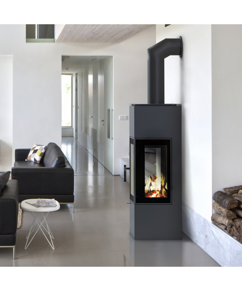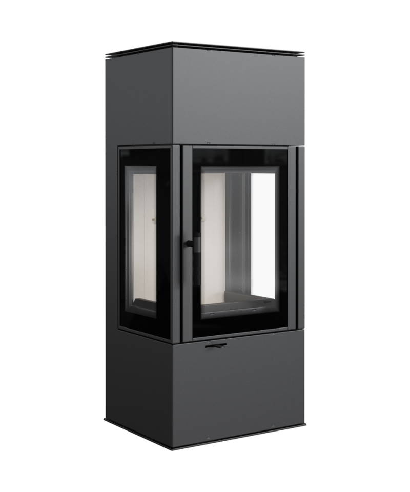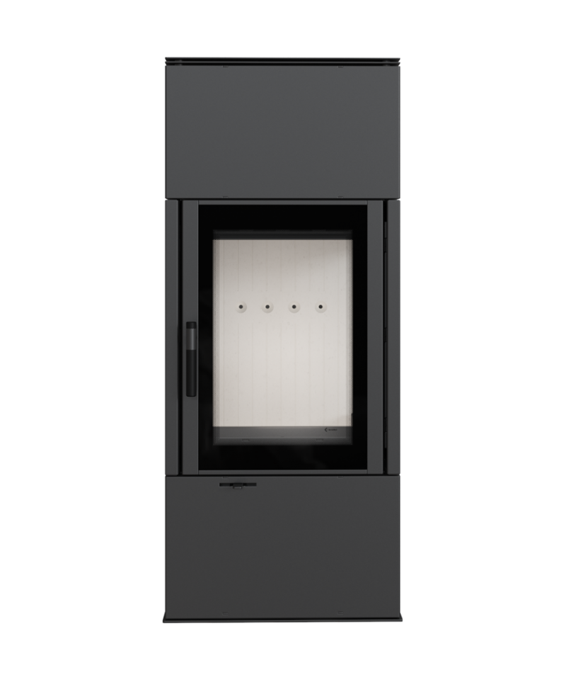 Veľké presklenie s dekoratívnym sklom GLASS a veľká spaľovacia komora. Moderná vertikálna ručka uľahčuje zatváranie dvierok. Piecka je dokonale vzduchotesná a je teda vhodná aj do domov s rekuperáciou.