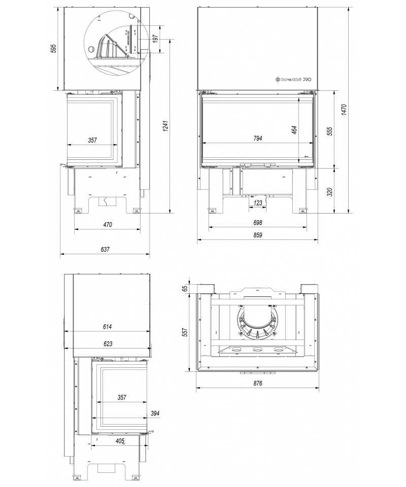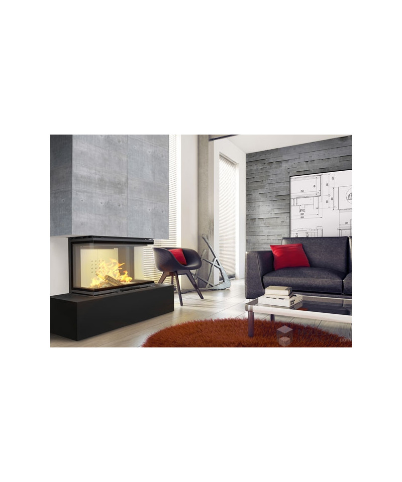 Trojstranné presklenie zaručuje maximálny pôžitok z pohľadu na oheň. dekoratívne sklo typu GLASS, ktoré opticky zväčšuje ohnisko a príjemný, tichý mechanizmus otvárania dverí.