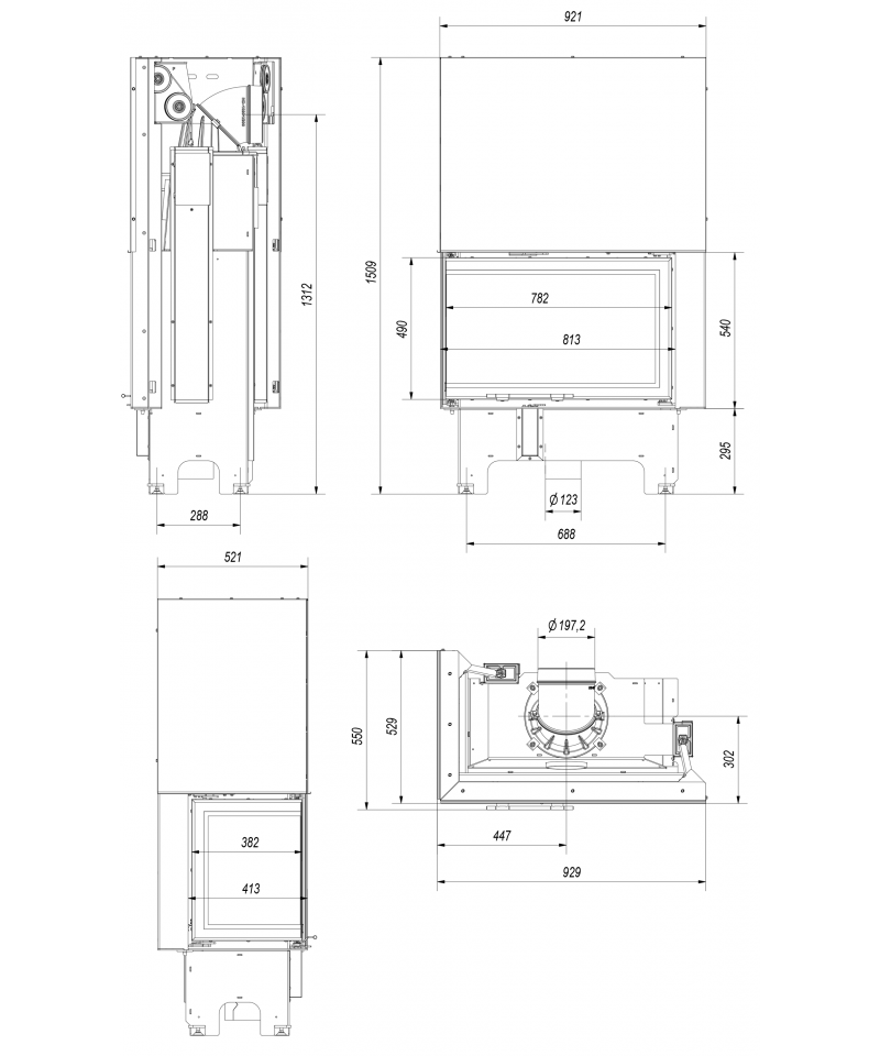 Vnútorný revízny systém umožňuje vykonávať servisné činnosti bez zásahu do obstavby krbu.