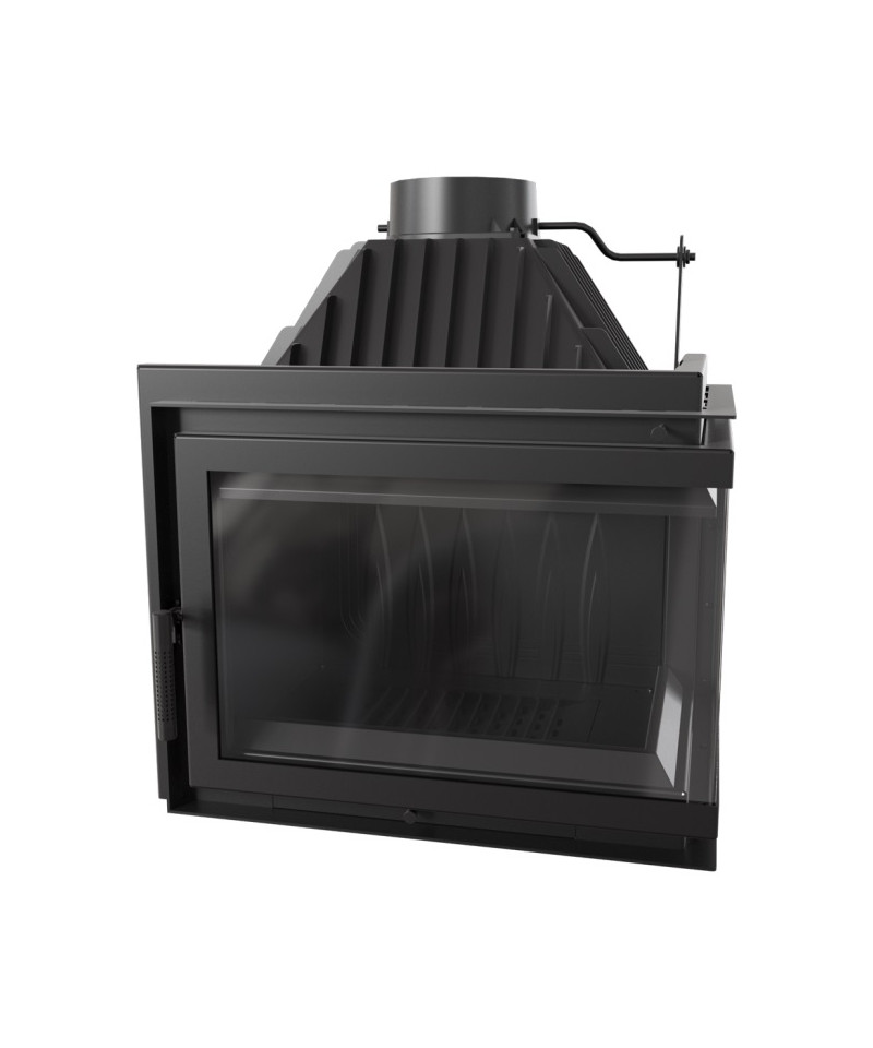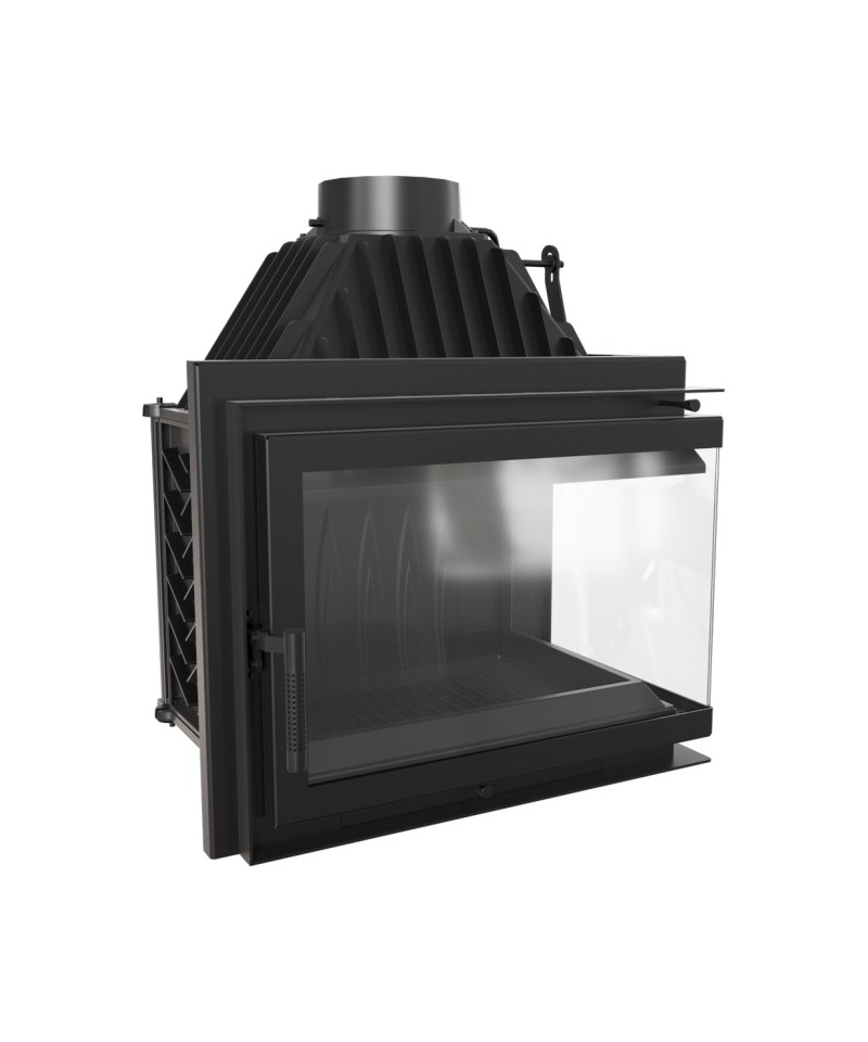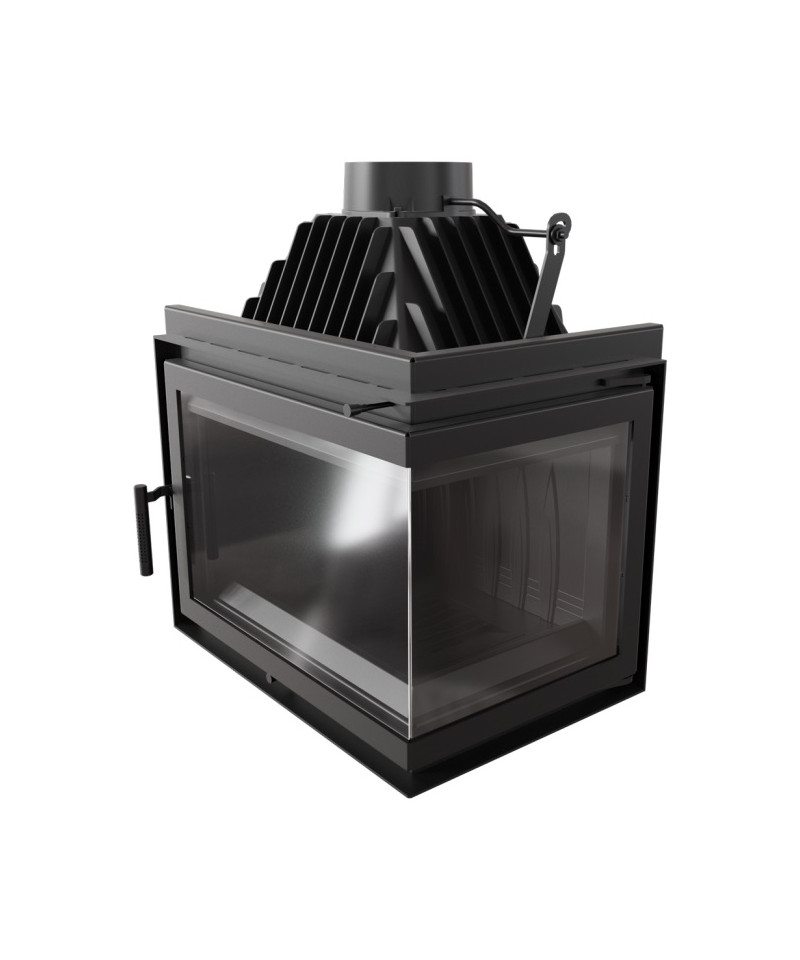 Rohová krbová vložka s dvierkami typu BS (bez rohového stĺpika) s deleným sklom.