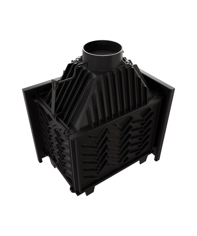 Husto umiestnené radiátory na tele krbovej vložky zabezpečujú zvýšené využitie energie.