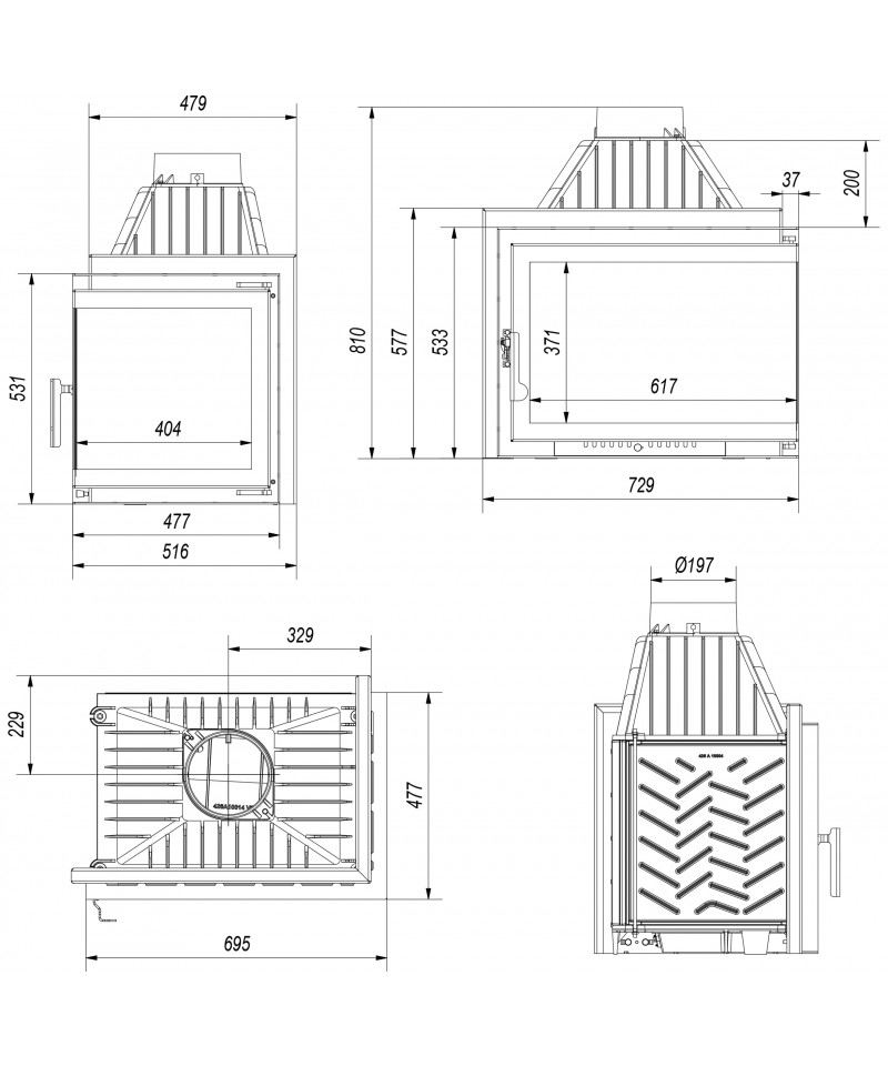 Kratki SIMPLE Z/S 8 BS ľavé presklenie - krbová vložka