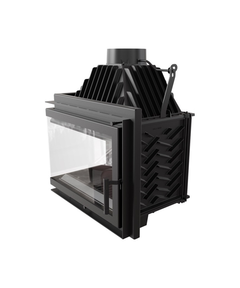 Rohová krbová vložka s dvierkami typu BS (bez rohového stĺpika) s deleným sklom.