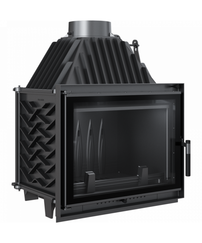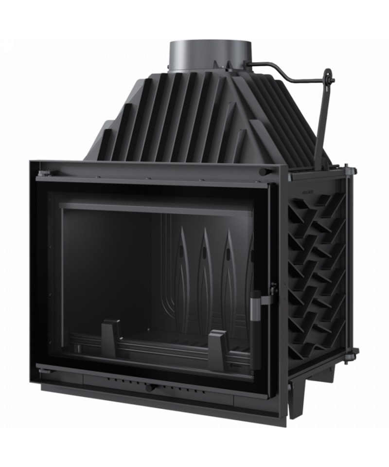 Udržiavanie čistoty krbovej vložky je jednoduchšie vďaka roštu a zásobníku na popol. Vybavená je tiež špeciálnym držiakom, ktorý bráni padaniu dreva na sklo.
