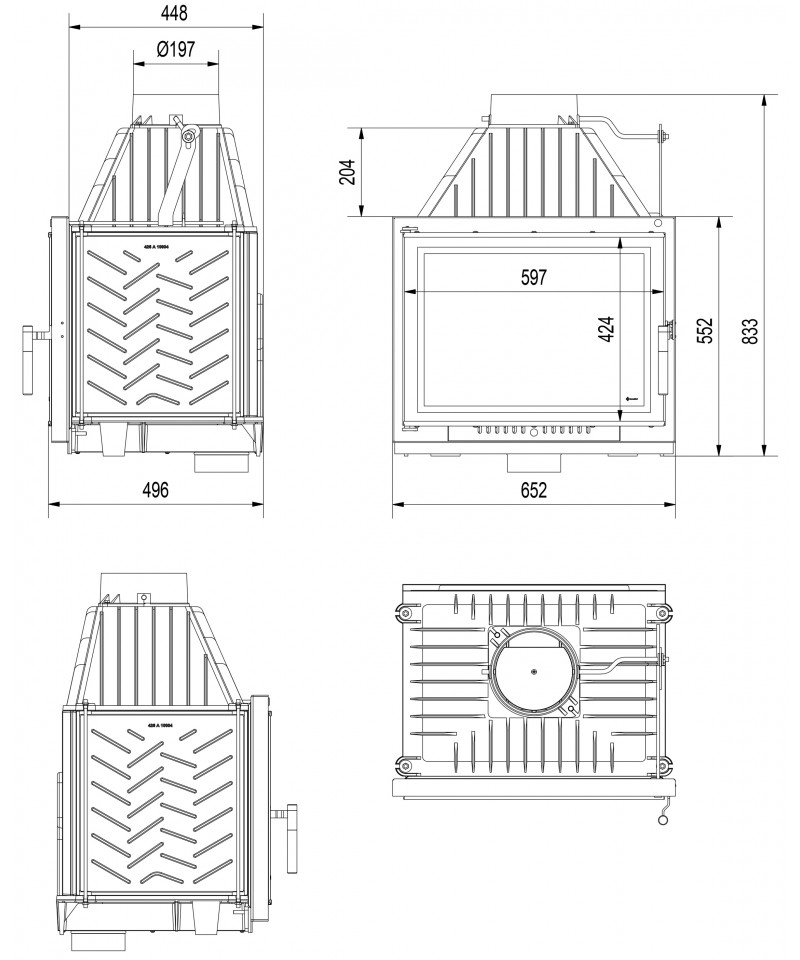Primárny vzduch na horenie je privádzaný zvonku, priemer 125 mm. Príprava je na spodnej časti krbu.