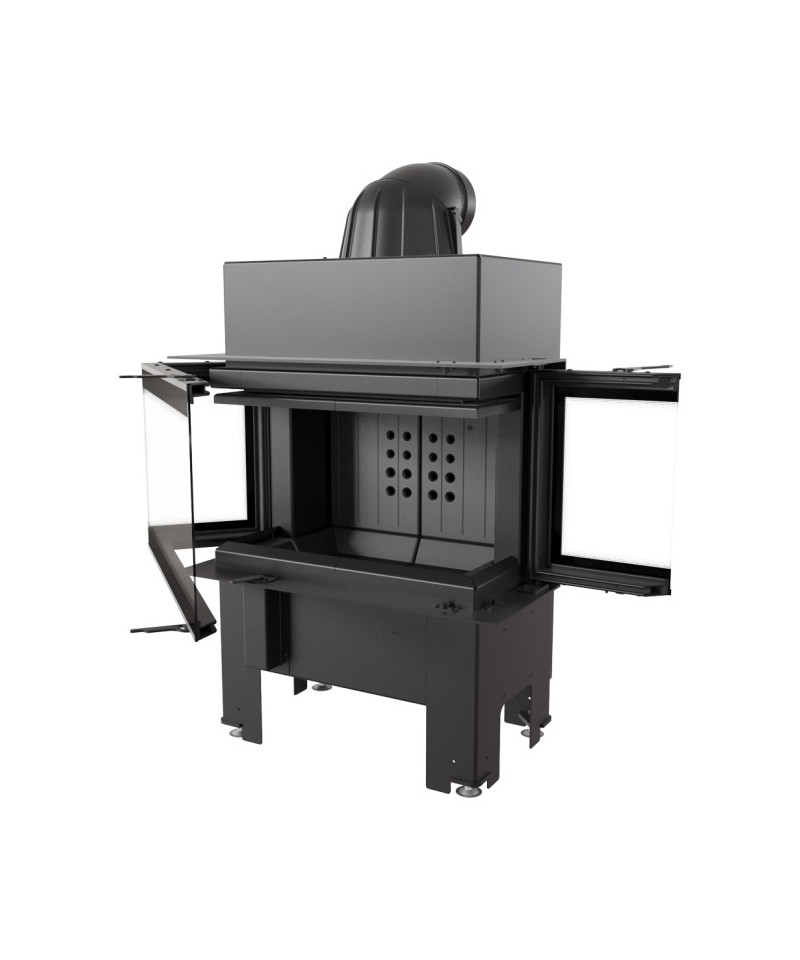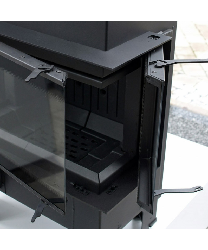 Trojstranné presklenie zaručuje maximálny pôžitok z pohľadu na oheň. dekoratívne sklo typu GLASS, ktoré opticky zväčšuje ohnisko a príjemný, tichý mechanizmus otvárania dverí.