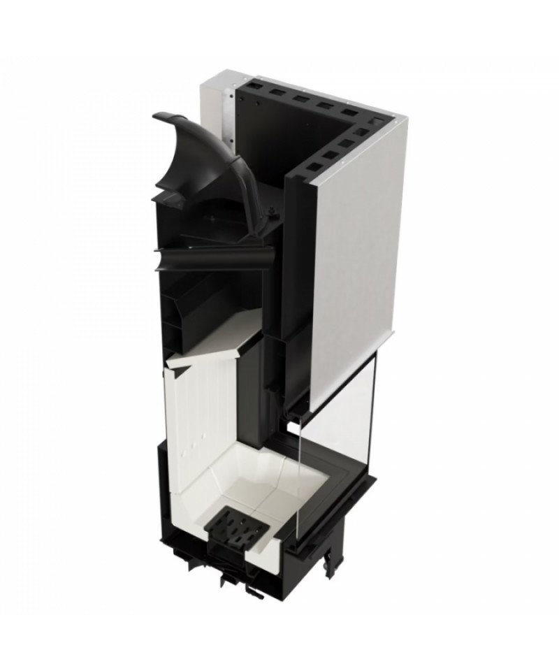 Nastavením regulátora prívodu vzduchu - od 0 do 50% - je vzduch nasmerovaný na zadnú stenu spaľovacej komory, čo podporuje spaľovací proces a efektívne spaľovanie plynov, čím sa znižuje emisia škodlivín do atmosféry. Okrem toho je vzduch distribuovaný cez kanály na bočné a predné sklá , čo pomáha udržiavať sklá čisté, zaisťuje optimálnu viditeľnosť ohňa a zlepšuje estetickú hodnotu krbu.