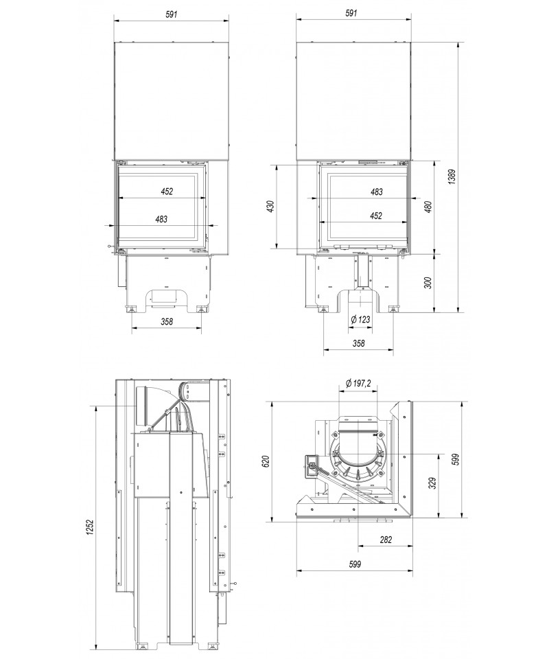 Montáž uľahčujú nastaviteľné nožičky a dymovod otočný o 360 °. Dvojitý systém otvárania dvierok - výsuvné pre jednoduchšie prikladanie dreva a bočné na čistenie.