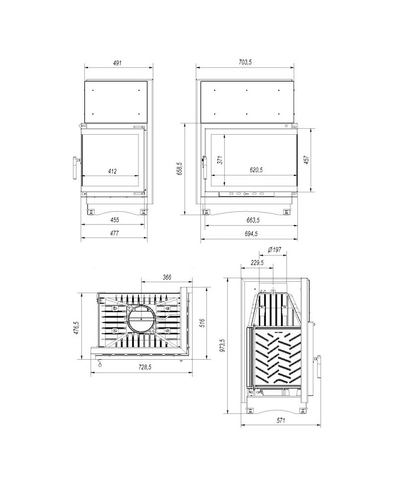 Liatinová krbová vložka určená pre menšie a stredne veľké domy. Disponuje relatívne nízkym výkonom a pomerne veľkým presklením.