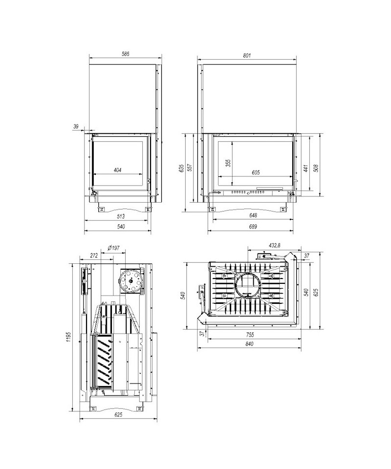 Kratki Zuzia 15 kW BS pravá bez stĺpika, výsuvne dvierka - krbová vložka rohová