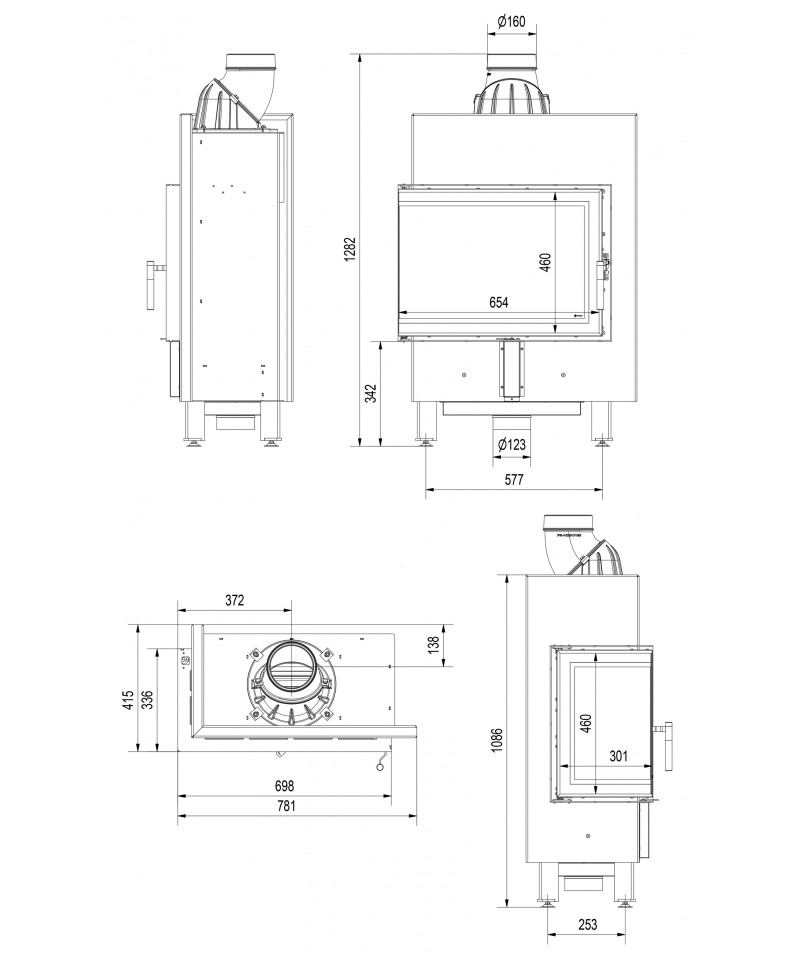 Nastaviteľné nožky umožňujú ustavenie krbovej vložky aj na prípadných nerovnostiach.