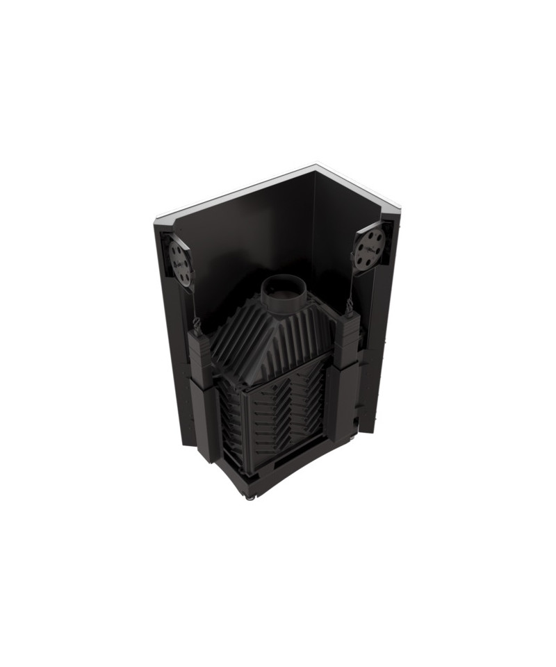Husto umiestnené radiátory na tele krbovej vložky zabezpečujú zvýšené využitie energie.