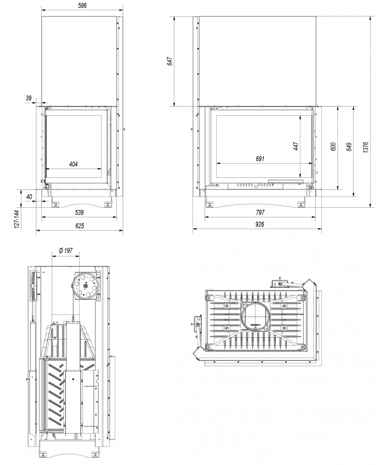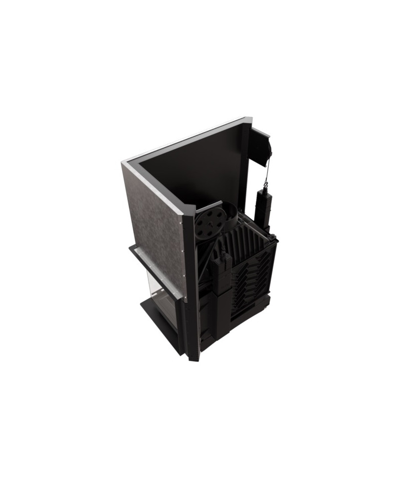 Husto umiestnené radiátory na tele krbovej vložky zabezpečujú zvýšené využitie energie.