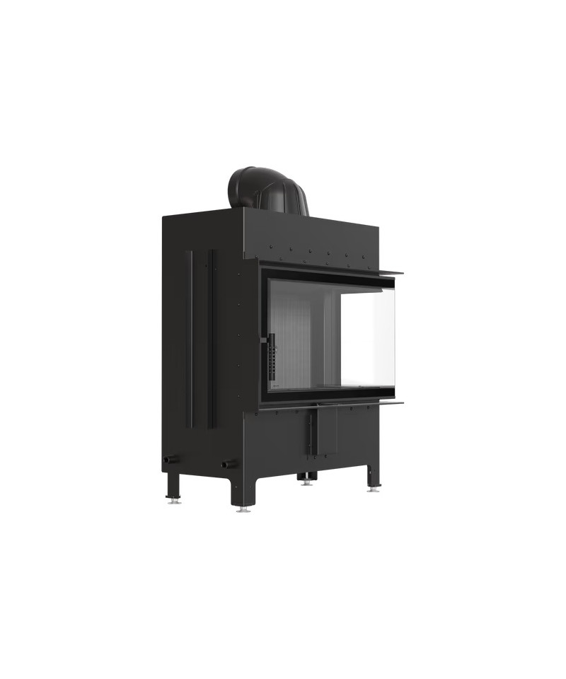 Trojitý prívod vzduchu do spaľovacej komory - primárny je privádzaný pod rošt, sekundárny cez otvory na zadnej stene a terciálny má za úlohu oplach skla.