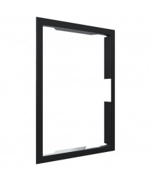 Dekoratívne sklo typu glass s čiernym okrajom, vďaka ktorému vyzerá krbová vložka moderne a elegantne a opticky zväčšuje pohľad na oheň.