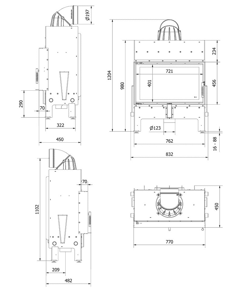Moderný oceľový rám pre krbové vložky FLOKI M PF rovné presklenie. Hlavnou výhodou je jeho rýchla a jednoduchá montáž bez pomoci akéhokoľvek náradia