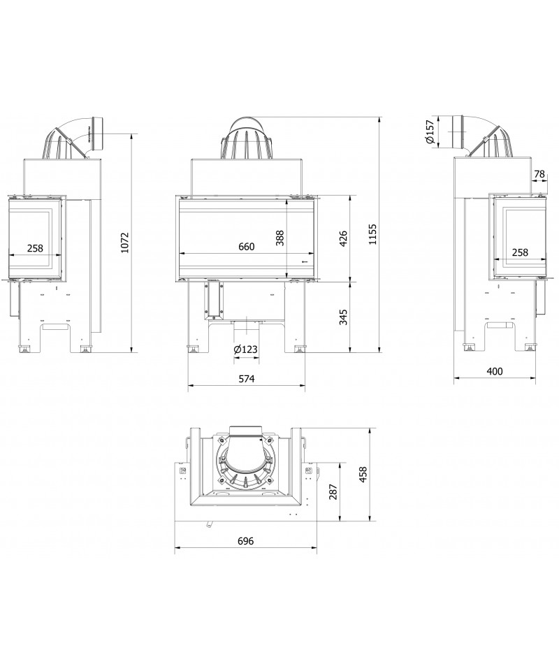 Upozornenie: Sada neobsahuje nastaviteľné nožky, ale sú súčasťou krbovej vložky.