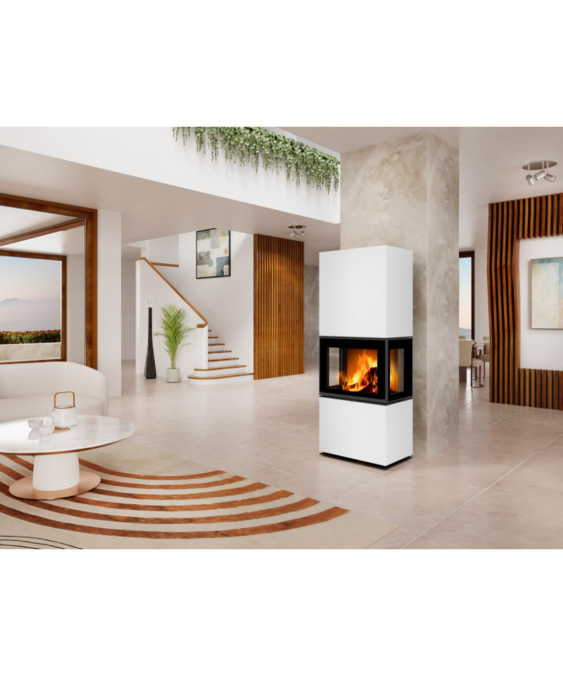 Dizajnové krby LERA C spojujú moderný dizajn, minimalistický vzhľad a funkčnosť. Tento voľne stojací krb zahreje Váš domov a zároveň sa stane výrazným estetickým prvkom interiéru. S tromi presklenými stranami ohniska prinášajú jedinečný pohľad na plamene z každého uhla a tak atmosféra tepla a pohodlia preniká doslova celým interiérom.