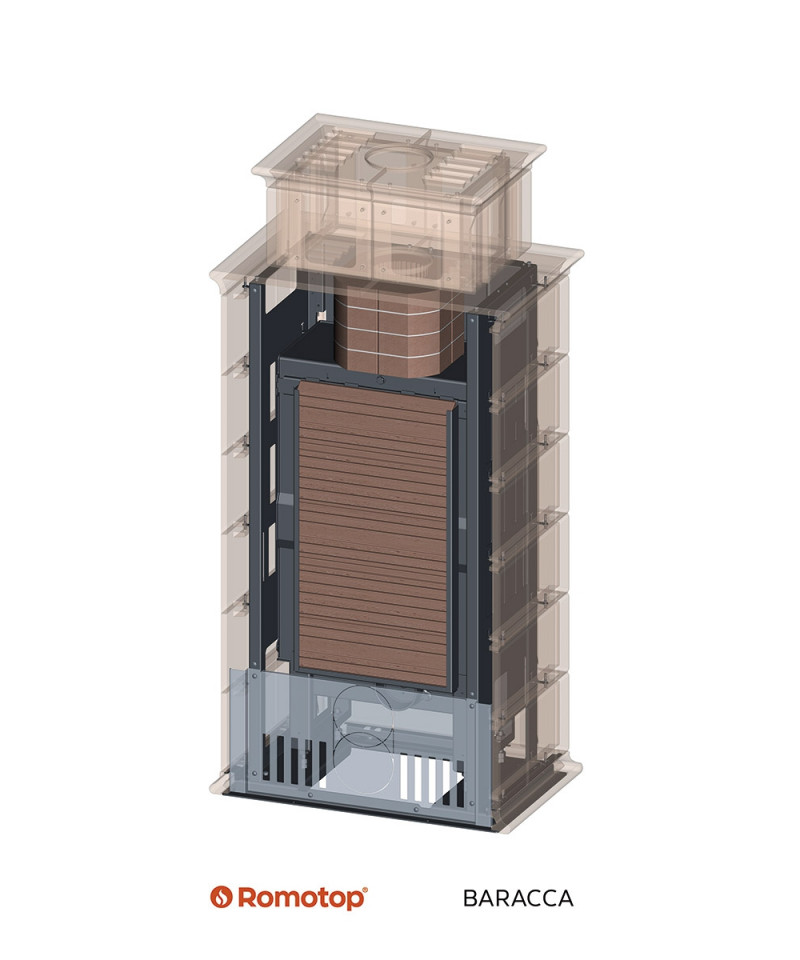 Moderná krbová vložka ponúka účinnosť viac ako 85 % a spĺňa najprísnejšie ekologické štandardy stanovené smernicou Európskej komisie o Ecodesigne. Dvojité sklo krbu zaručuje bezpečnosť a komfort. Keramické akumulačné krby BARACCA sú vhodné aj pre nízkoenergetické domy. Spaľovacia komora je vyložená šamotovými tvarovkami, v štandardnom prevedení s roštom s možnosťou zmeny na variant bez roštu. Jednoduchú kontrolu nad polohou úplne otvorených dvierok umožňuje ich aretácia. Nastavenie primárneho a sekundárneho vzduchu umožňuje jediný presný ovládač. Výstup spalín je štandardne možný horným alebo zadným odvodom. Vďaka sekundárnemu prívodu vzduchu na vnútornú plochu skla dvierok je účinne zabránené usadzovaniu nečistôt. Inovatívny systém vedenia spalín DOUBLE SPIN lepšie využíva tepelnú energiu a súčasne napomáha ideálnemu horeniu dreva. Samozrejmosťou je dnes už nevyhnutný centrálny prívod externého vzduchu (CPV) do spaľovacej komory.