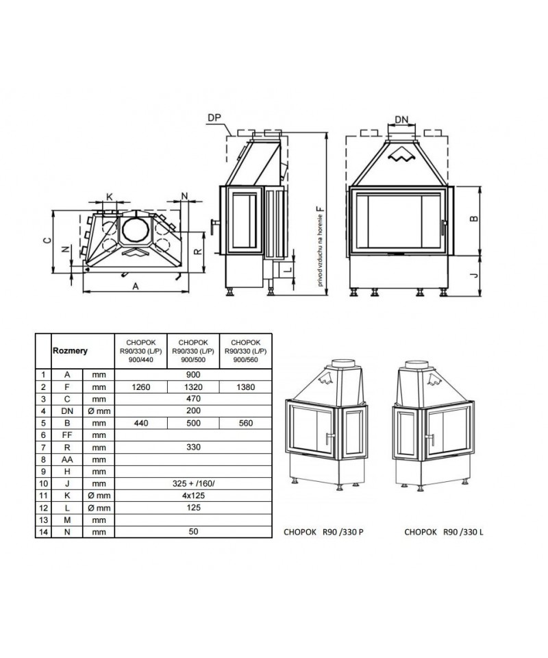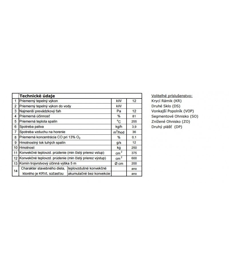 Je dostupný pre krbové vložky CH, Ď, M, B v tvarovom prevedení “A, B, C“ a rozmerovom prevedení 2S, 3S, 4S.