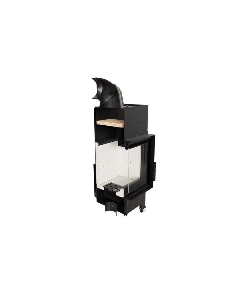 Pod rošt je privádzaný primárny vzduch, ktorý uľahčuje zapaľovanie dreva. Sekundárny vzduch je distribuovaný k zadnej a bočnej stene spaľovacej komory. Zabezpečuje efektívne spaľovanie plynov, obmedzuje dymivosť a emisie škodlivých látok do ovzdušia. Vzduchová clona je sekundárnym zdrojom vzduchu v procese spaľovania, ktorého prúd sklo "oplachuje", čím účinne odstraňuje častice sadzí a obmedzuje ich usadzovanie na skle. Vermikulitový deflektor predlžuje dráhu salín - zvyšuje tak účinnosť spaľovania a zaručuje lepšie využitie energie.