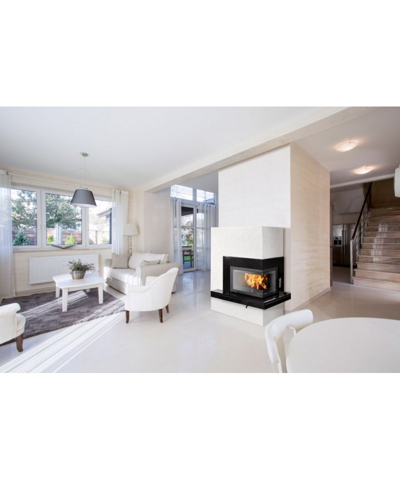 Teplovzdušné krbové kachle s obstavbou od firmy ABX, model PATEO - Moderné krbové kachle s obstavbou a rohovým presklením sú vyrobené najmodernejšou technológiou, ktorá dáva kachliam jedinečný vzhľad a pevnosť. Kachle sú určené aj pre nízkoenergetické domy s možnosťou dopravenie spalovacieho vzduchu z exteriéru.Možnosť využitia horného a zadného vývodu pre dymovod. Kachle sa vyrábajú v ľavom alebo pravom prevedení, vo farbách žula alebo pieskovec.