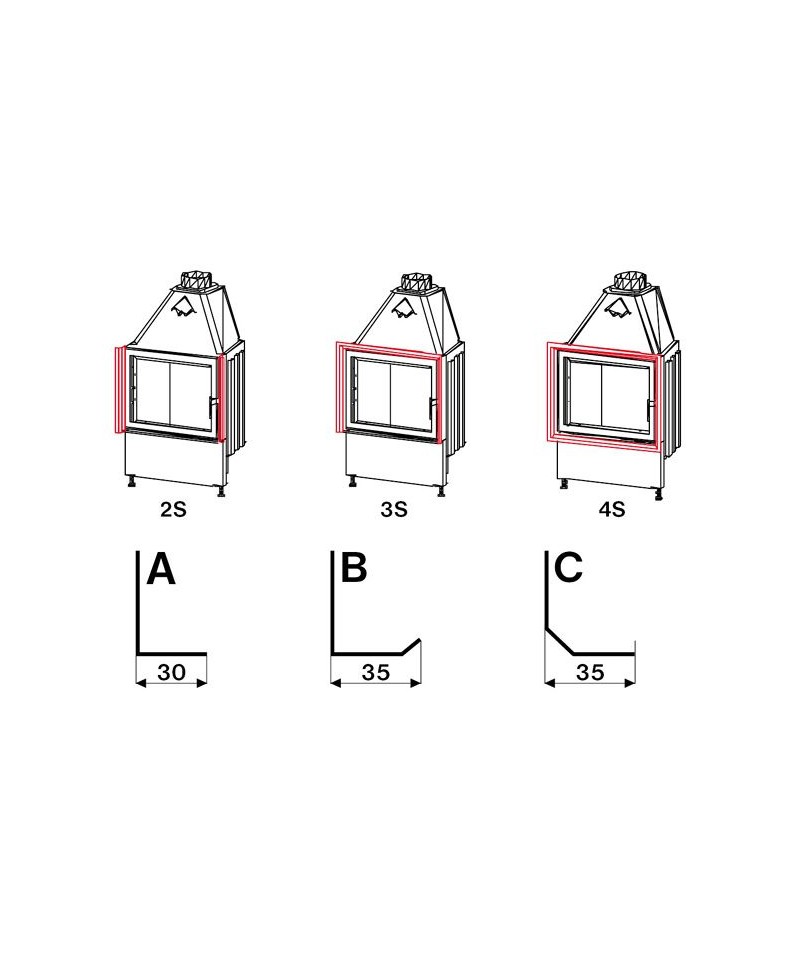 Je dostupný pre krbové vložky CH, Ď, M, B v tvarovom prevedení “A, B, C“ a rozmerovom prevedení 2S, 3S, 4S.