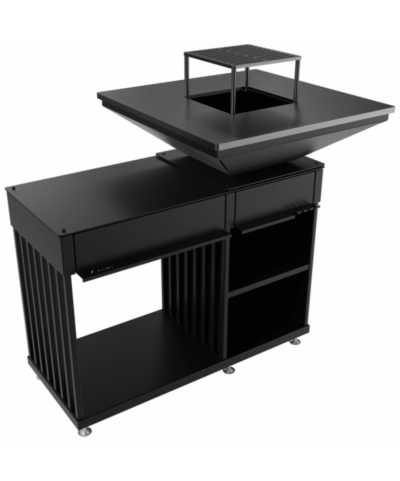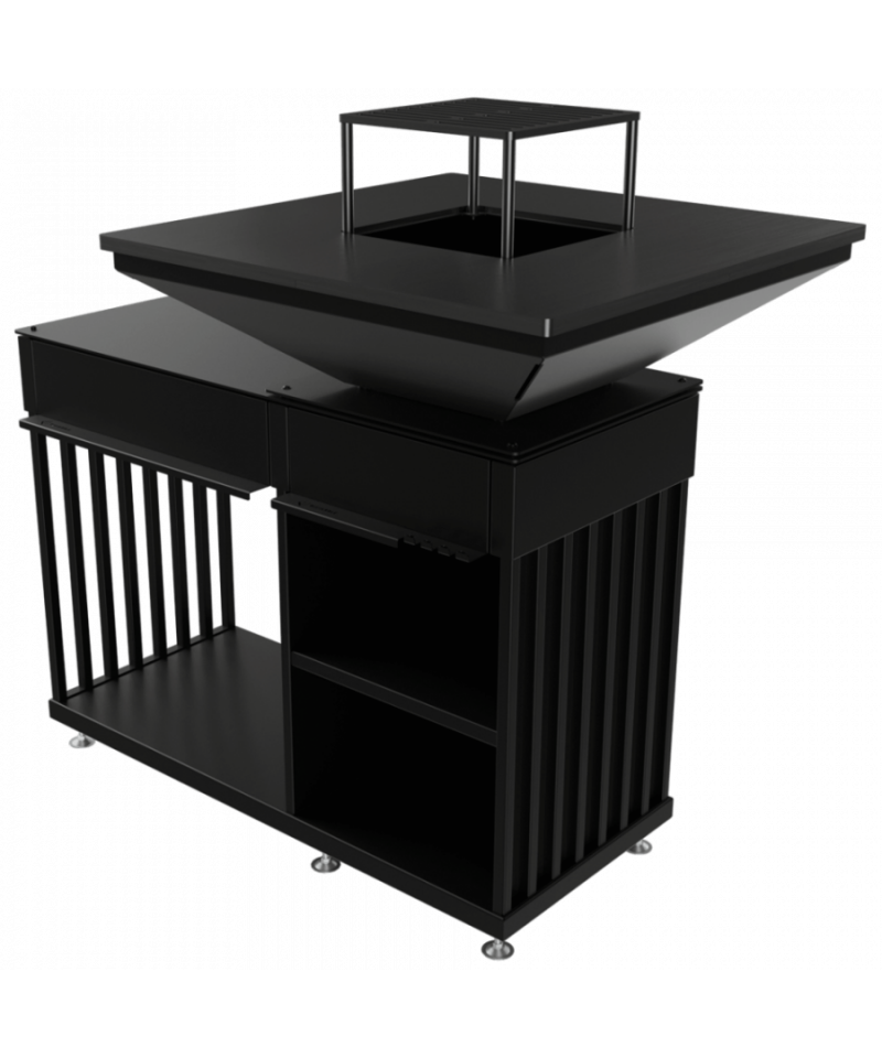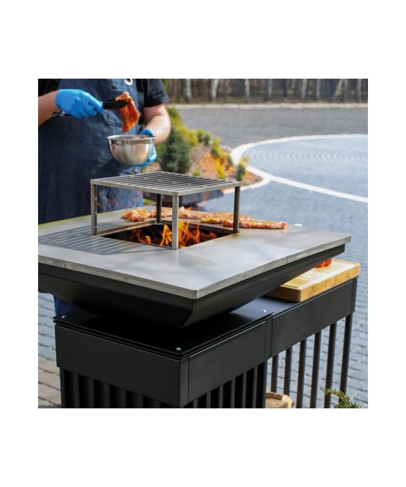QUADRUM je profesionálne záhradné ohnisko s grilom najvyššej kvality. Obsahuje všetko v jednom - oceľovú varnú platňu a rošt, praktické odkladacie priehradky na riad a koreniny a priestranný ukladací priestor na drevo. Quadrum nie je len moderný záhradný gril, ale plne vybavená vonkajšia kuchyňa. Môže slúžiť aj ako záhradné ohnisko - zdroj tepla počas chladných večerov alebo ako prírodné osvetlenie záhrady.