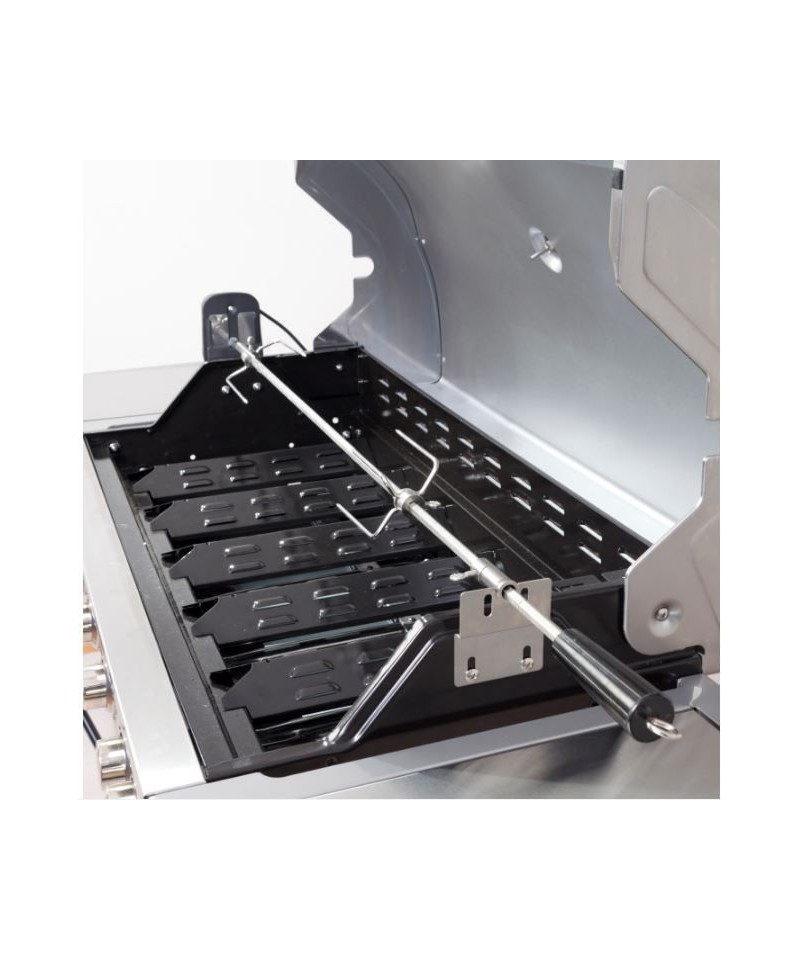 K záhradnému grilu od nás zadarmo obdržíte redukčný ventil a nerezovú grilovaciu ihlu s motorom. Grilovacia ihla s motorom je vyrobená z nerezovej ocele a z oboch strán je vybavená štyrmi ihlicami s aretačnými skrutkami, vďaka ktorým si môžete ihlice nastaviť podľa vlastnej potreby.