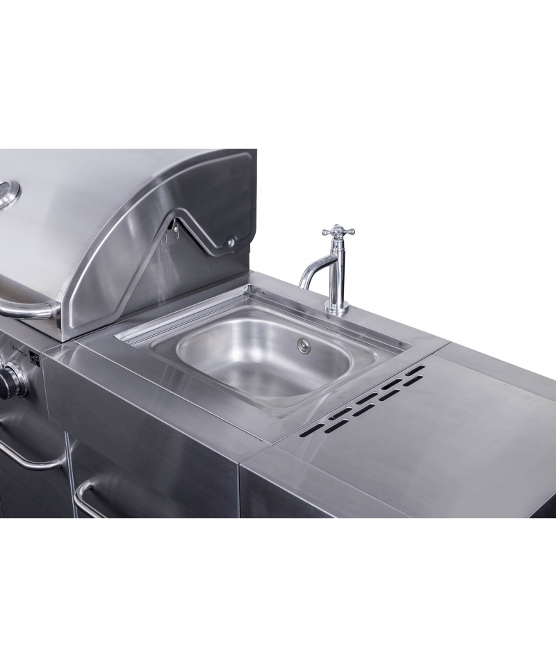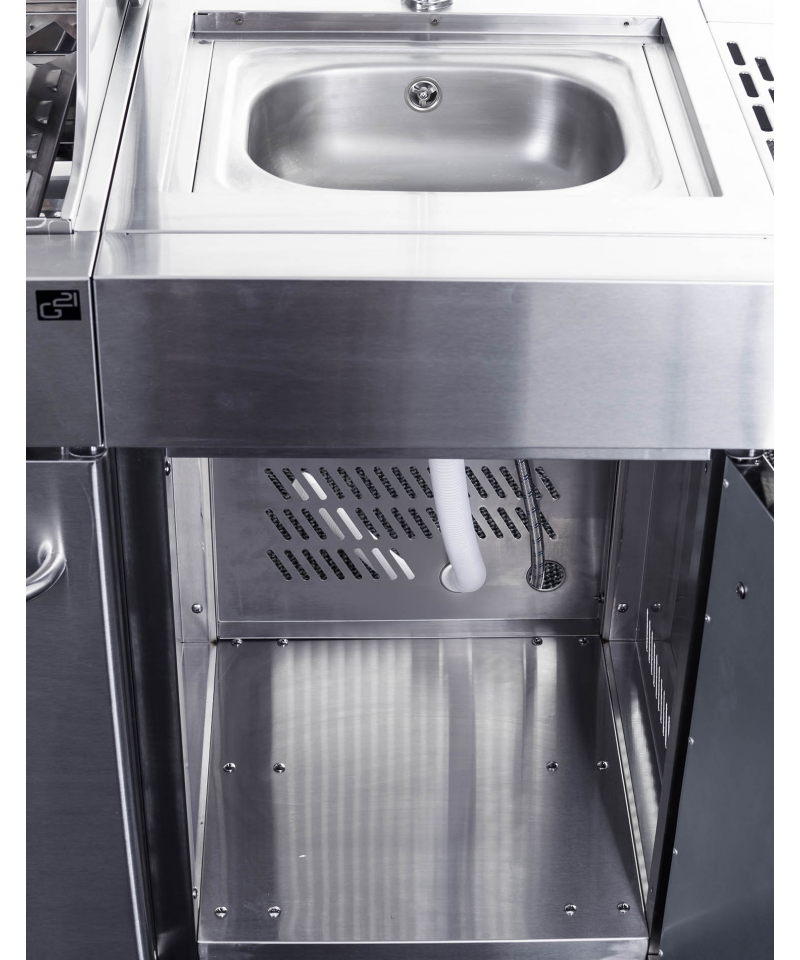 Čo nesmie chýbať v žiadnej kuchyni? Predsa drez. A ten nechýba ani pri grile G21 BBQ Arizona Premium line. Vstavaný drez má aj prívod na vodu zo záhradnej hadice. A po opláchnutí riadu drez len zakryte doskou a razom získate väčšiu pracovnú plochu na prípravu pochúťok na letné grilovanie.