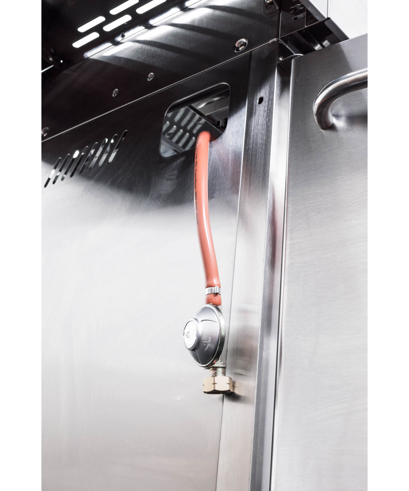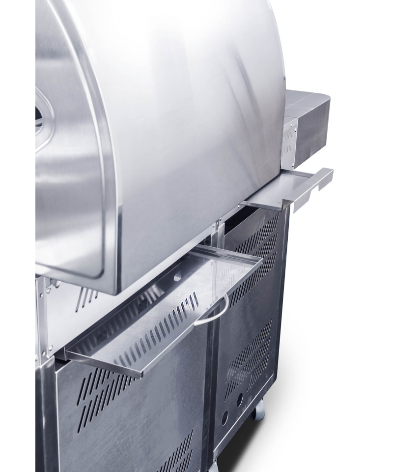 Pod horákmi a drezom sú vstavané priehradky, ktoré sme opatrili dvierkami pre ochranu uložených vecí pred počasím alebo prachom. Uskladnite tu grilovacie náradie i riad alebo plynovú bombu v dňoch, kedy gril nepoužívate.
