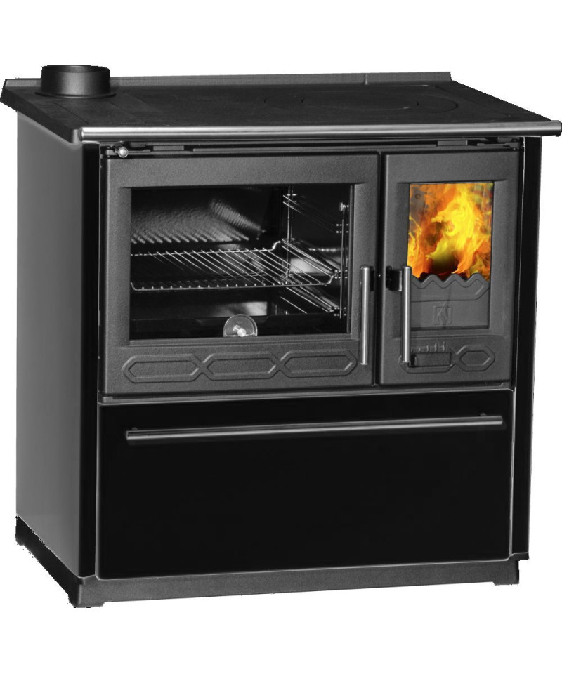 Vysoko kvalitný sporák na tuhé palivo, kde ohnisko je vyložené hrubými liatinovými platňami, kvalitné liatinové varné platne, liatinové dvierka. Kvalitná posmaltovaná rúra na pečenie je vybavená roštom a pekárničkou na pečenie, ktorý sa dá umiestniť v 3 polohách. Mnohý ocenia je odvetranú dvojitú bočnú stenu, kde teploty na bokoch sporáka nepresahujú 100°C.