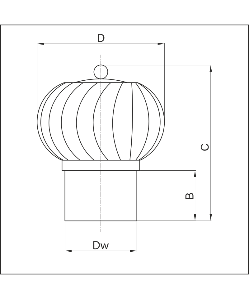 Rotačná ventilačná odťahová turbína je určená k zvýšeniu statického tlaku vo ventilačnom potrubí na základe rozdielneho prúdenia vzduchu. Rotačná hlavica je zároveň estetické zakončenie ventilačného systému. Rotačná ventilačná odťahová turbína je vyrobená z galvanizovaného plechu a je odolná voči teplote 150°C a vonkajším podmienkam.