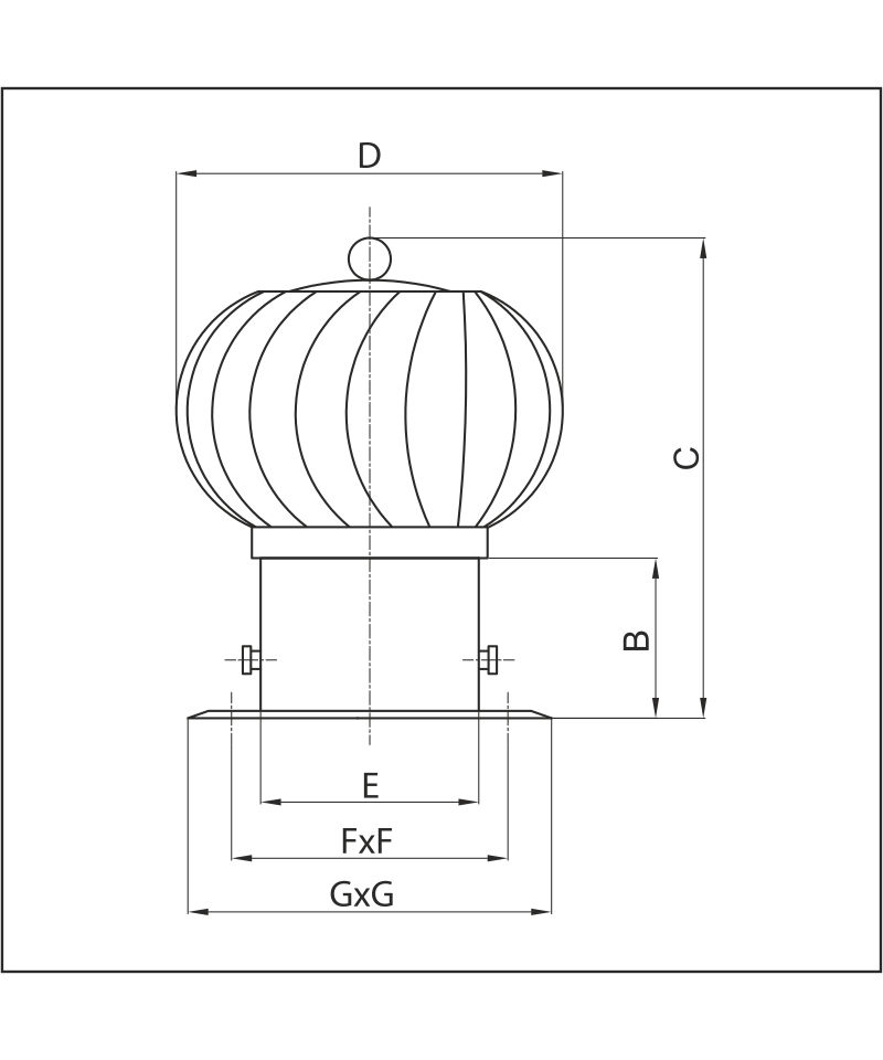 Rotačná ventilačná odťahová turbína je určená k zvýšeniu statického tlaku vo ventilačnom potrubí na základe rozdielneho prúdenia vzduchu. Rotačná hlavica je zároveň estetické zakončenie ventilačného systému. Rotačná ventilačná odťahová turbína je vyrobená z galvanizovaného plechu a je odolná voči teplote 150°C a vonkajším podmienkam.