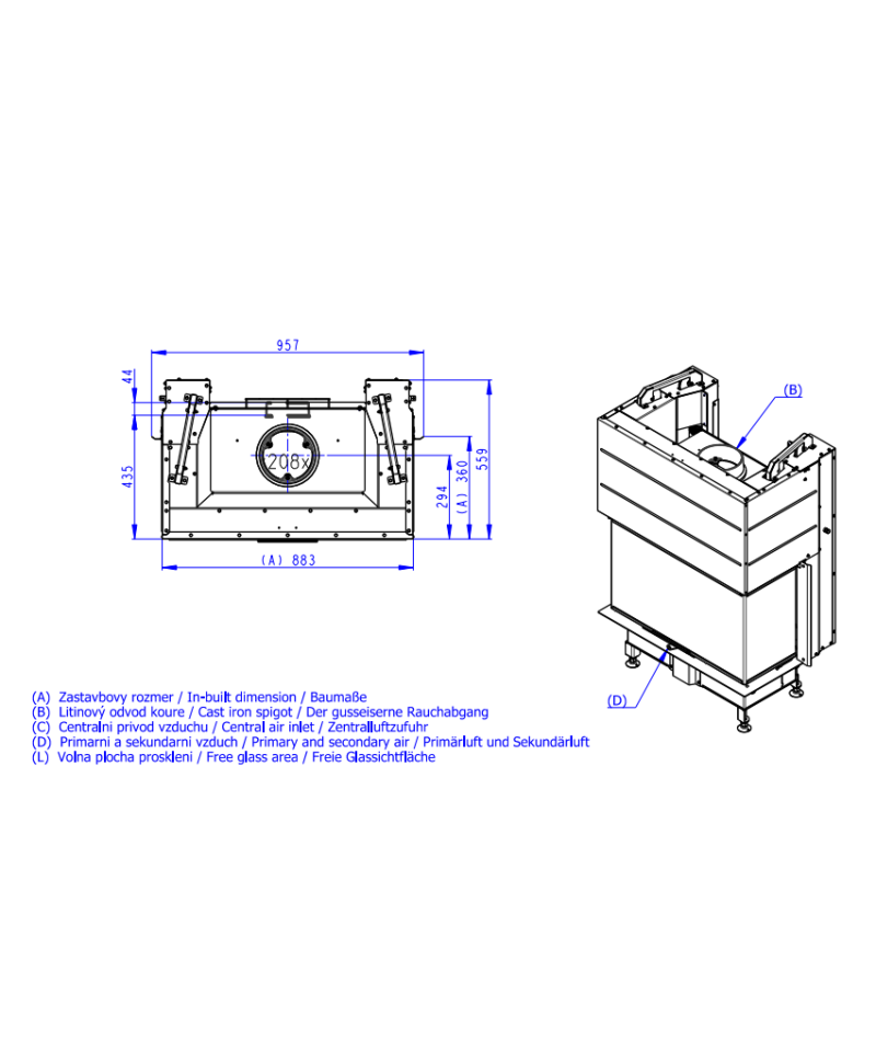 Čistá pravouhlá geometria skla dvierok je určujúcim prvkom celého dizajnu krbových vložiek HEAT s trojstranným presklením a výsuvnými dvierkami. Vďaka veľkorysému preskleniu si dokonale užijete hru živého ohňa.